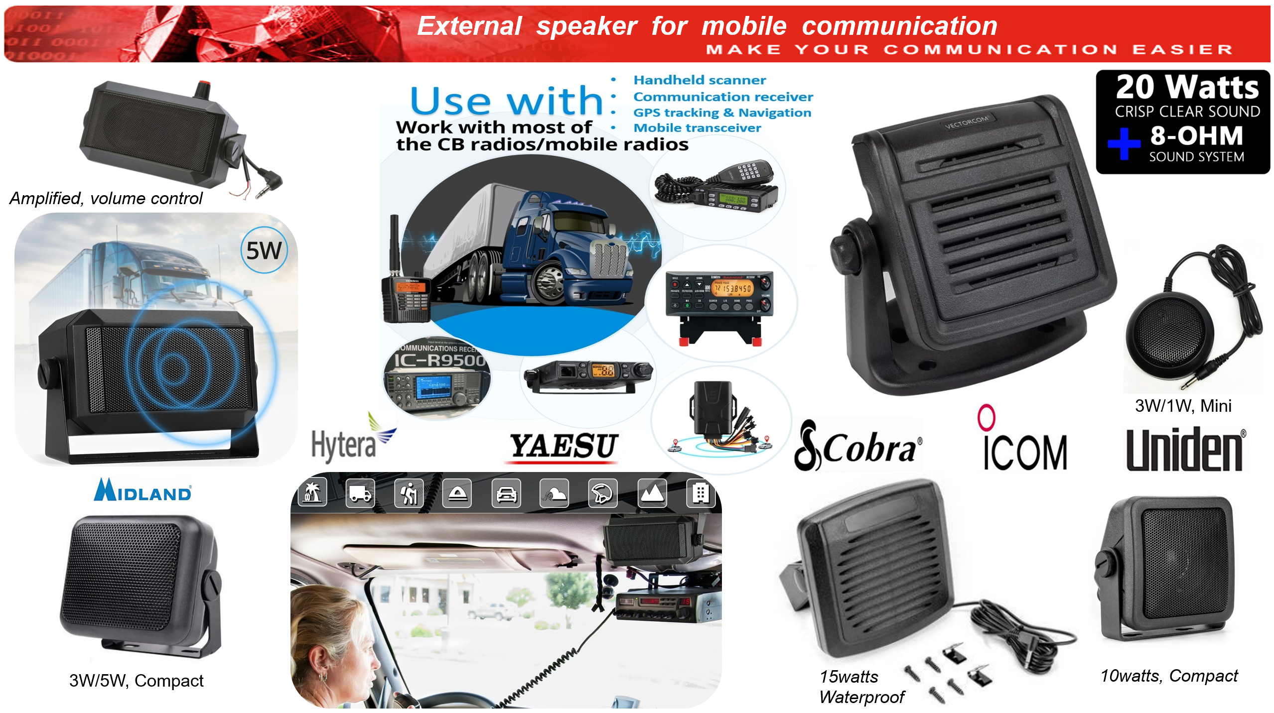 HEAVY-DUTY EXTERNAL SPEAKER 20W CRISP CLEAR SOUND compatible with Mobile radios,CB Radio,GMRS mobiles, marine radio and DMR radios